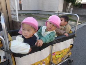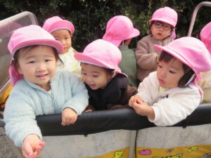 でこぼこ道ではカートが揺れるのが楽しくて大喜びの子どもたち☻