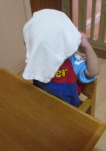 自分でエプロンをつけたり・・・